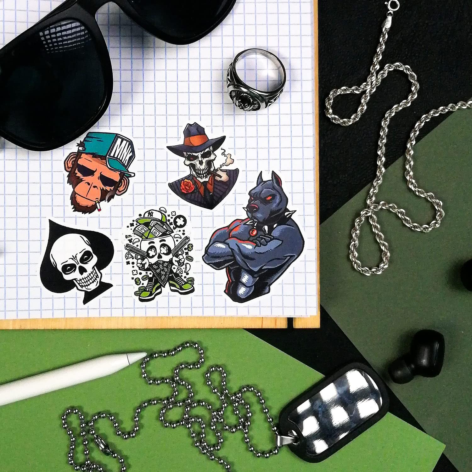 Comes with 90 unique gangster-themed stickers, featuring skull motifs and cartoon-style designs—perfect for creative decoration and personalization. -